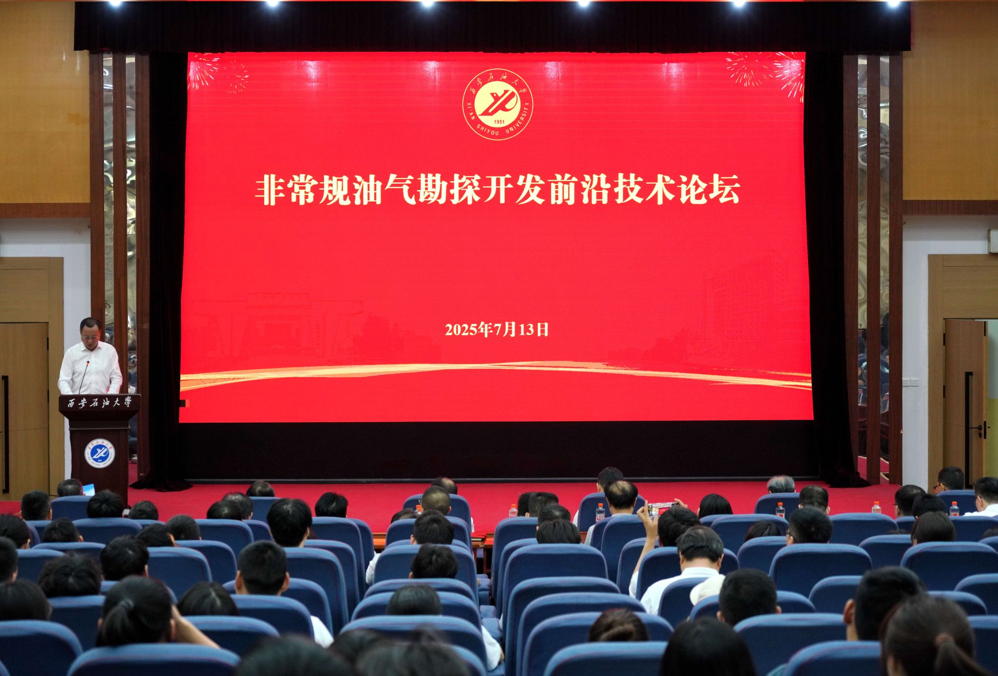 开幕式上,王进富代表学校致欢迎辞。他向莅临论坛的各位专家学者表示热烈欢迎和崇高敬意。他谈到,beat365官方网站长期扎根西部,坚持服务鄂尔多斯盆地,始终与国家能源战略同频共振,在非常规油气领域已构建起从基础理论研究到关键技术研发、工程应用服务的完整学科链和科研创新体系。他指出,非常规油气资源已成为保障国家能源安全的战略新支点,在“双碳”目标引领的能源转型关键期,深层页岩气高效开发、超低渗储层经济有效改造等“卡脖子”难题亟待突破,人工智能、大数据等新一代信息技术对传统勘探开发模式的革新刻不容缓,本次论坛的举办,旨在汇聚行业智慧,以前沿技术和创新思维共同探索破解之道,为中国能源事业注入西石大力量。