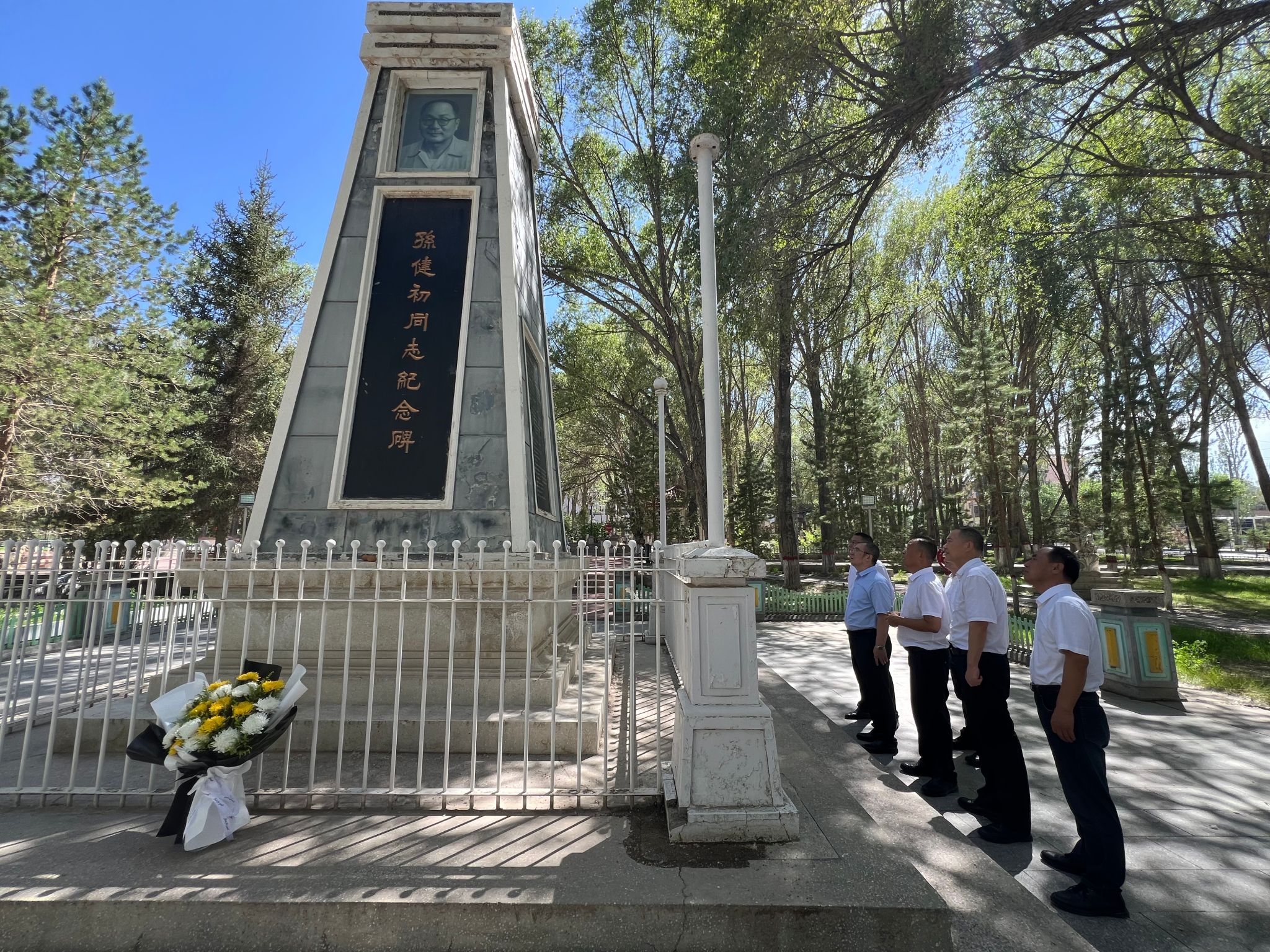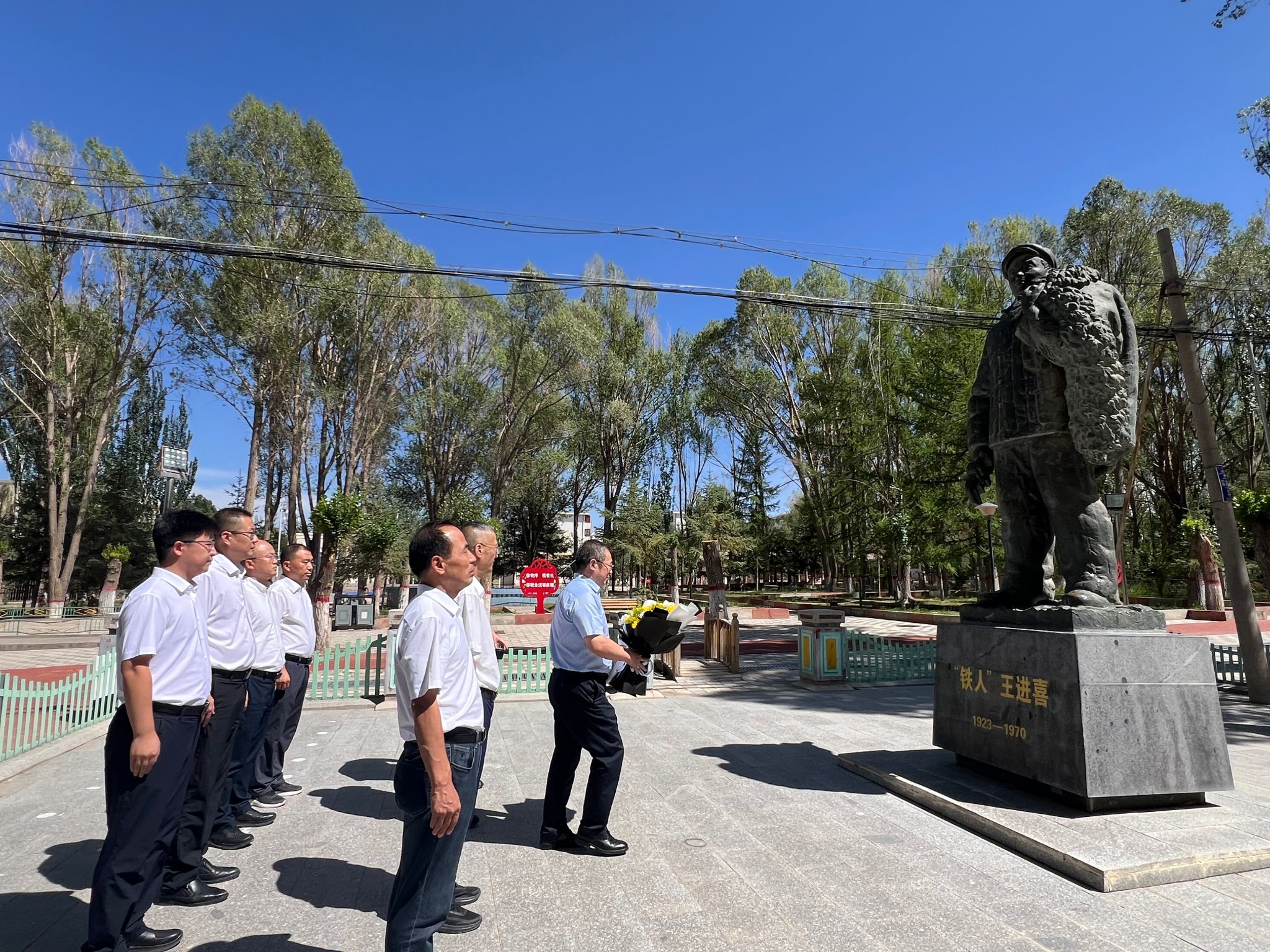 在玉门老城区,常江一行专门拜祭了新中国西北石油工业奠基人、西北石油工业学校创建者之一的邹明革命先辈,代表学校敬献了鲜花,向新中国西北石油工业奠基人、西北石油工业学校创建者之一的孙健初纪念碑和铁人王进喜铜像敬献了鲜花。玉门油田党委委员、总地质师唐海忠,生产保障服务中心执行董事、党委书记王美强陪同参加当天活动。
