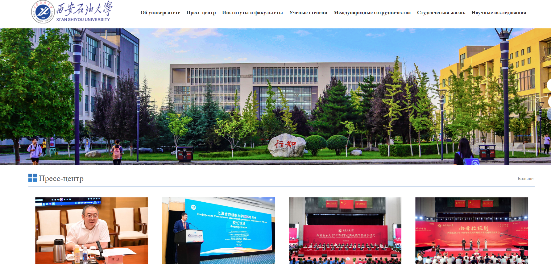 俄文主页聚焦学校核心发展成果,开设beat365(об университете)、新闻中心(Пресс-центр)、院系介绍(Институты и факультеты)、学术学位(Ученые степени)、国际合作(Международные сотрудничества)、校园生活(Студенческая жизнь)、科学研究(Научные исследования)等特色板块,系统呈现学校在人才培养、科学研究、社会服务等方面的综合实力,尤其突出国际化办学的鲜明特色与丰硕成果,为俄语世界打开一扇了解西石大的全新窗口。