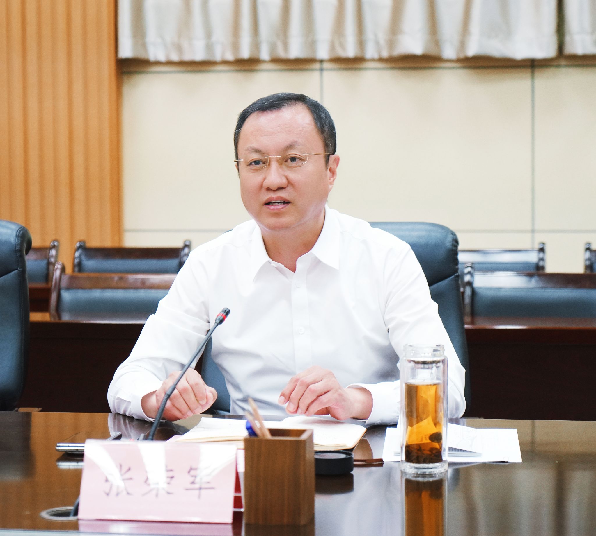 8月18日上午,延安高新技术产业开发区党工委副书记、管委会主任尚文隆率队来校就深化产学研协同、共建高水平创新平台等相关事宜交流座谈。延安高新区党工委委员,延安能源装备集团(简称“集团”)党委书记、董事长丁许军,集团总经理、延安嘉盛公司董事长苏忠贵,集团副总经理、延安石源公司董事长刘建忠,集团副总经理、延安嘉盛公司总经理苏小东陪同来访。beat365副校长张荣军出席座谈会并讲话。