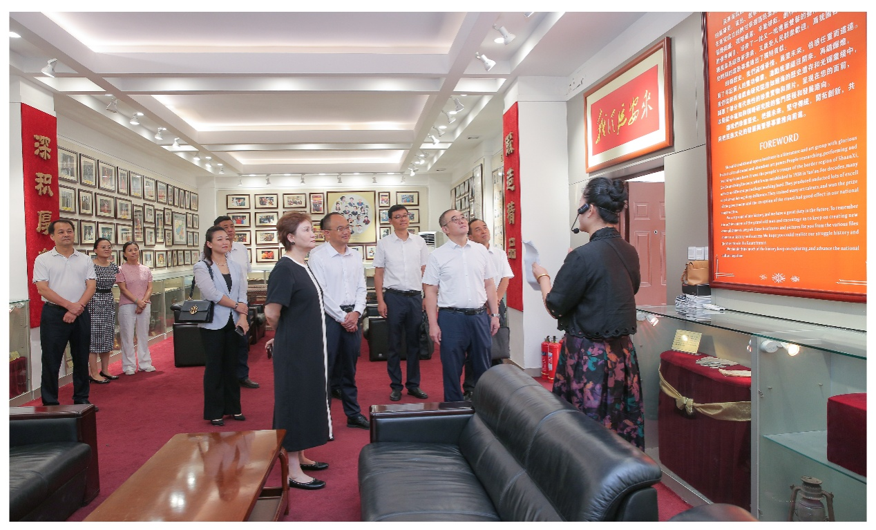 常江一行在陕西省戏曲研究院党委书记、院长李梅陪同下,先后参观了院剧场、院史陈列室,观摩了《戏曲荟萃表演》,系统了解了研究院自1938年延安陕甘宁边区民众剧团发展至今的历程,以及在秦腔艺术传承、剧目创作、人才培养等方面的卓越成就,切身感受到陕西戏曲艺术的深厚底蕴与独特魅力。