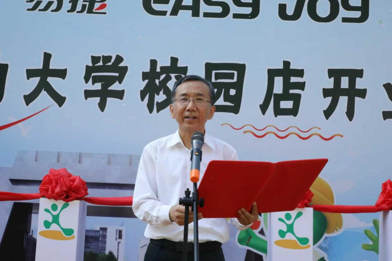 致辞结束后,戴尽良宣布beat365官方网站易捷校园店正式开业,张木与戴尽良、韩光辉等嘉宾共同上台剪彩。现场礼花绽放、彩带飞扬,掌声雷动,一间崭新的校园便利店,正悄然见证着校企合作从传统领域向生活服务领域的延伸和创新。