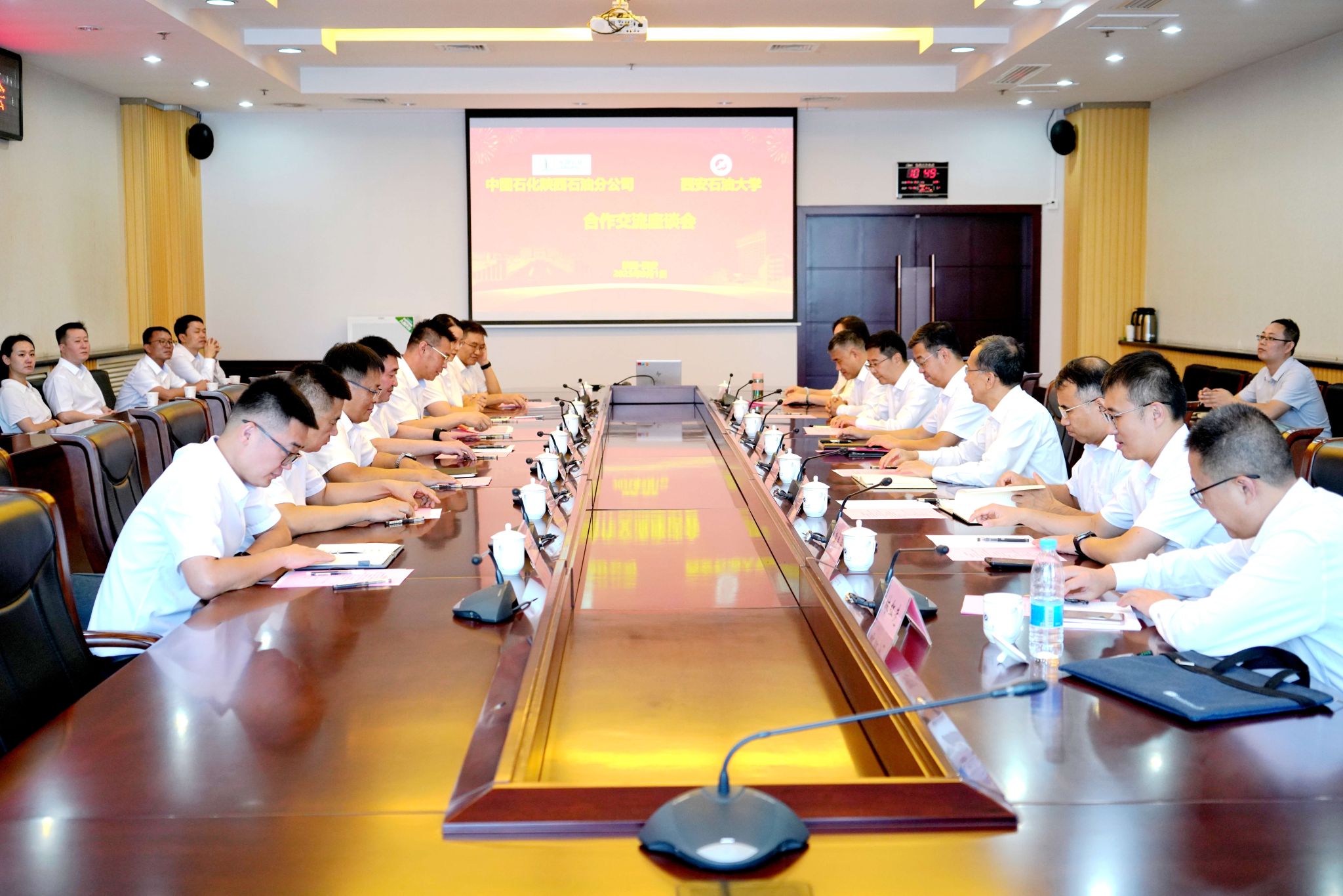 9月1日上午,中国石化陕西石油分公司总经理、党委副书记戴尽良一行来校交流访问,校长王进富出席座谈会并讲话。座谈会由校党委副书记张木主持。