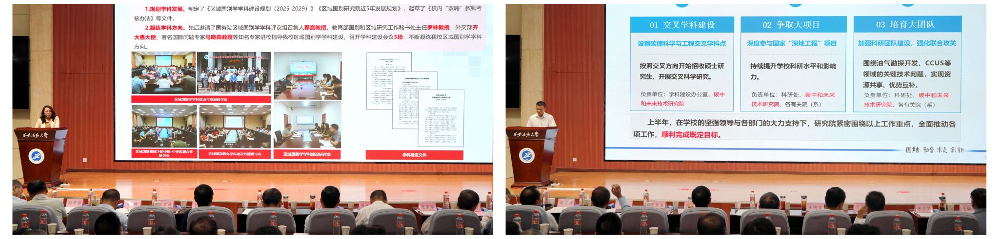校长王进富作了题为《加快推进三个年,建设理想西石大》的工作报告。报告系统梳理了上半年学校扎实推进“六大行动”各项举措和取得的主要成绩。报告指出,上半年,全校同心协力落实“学科达标年、人才提升年、改革创新年”各项重点任务,事业呈现稳中有进、持续向好的发展态势:学科建设扎实攻坚,科研范式不断创新,人才队伍质量有序提升,育人方式改革持续深化,合作交流成效不断显现,管理服务效能有效增强。