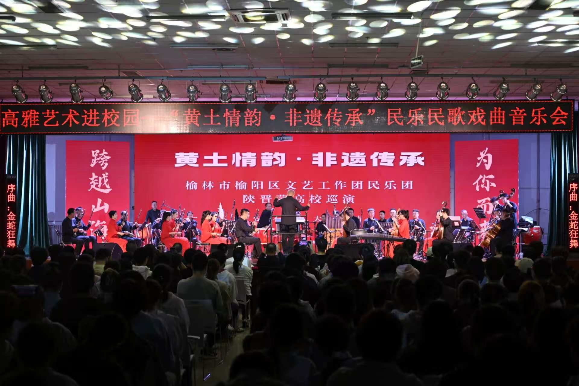 音乐会现场,陕北唢呐高亢激昂、板胡婉转缠绵,一首首质朴深情的民歌、一段段韵味悠长的戏曲轮番上演,引来阵阵掌声。整场演出不仅是一场视听盛宴,更搭建了非遗文化与青年对话的桥梁,使传统艺术在校园赓续传承,焕发时代光彩。