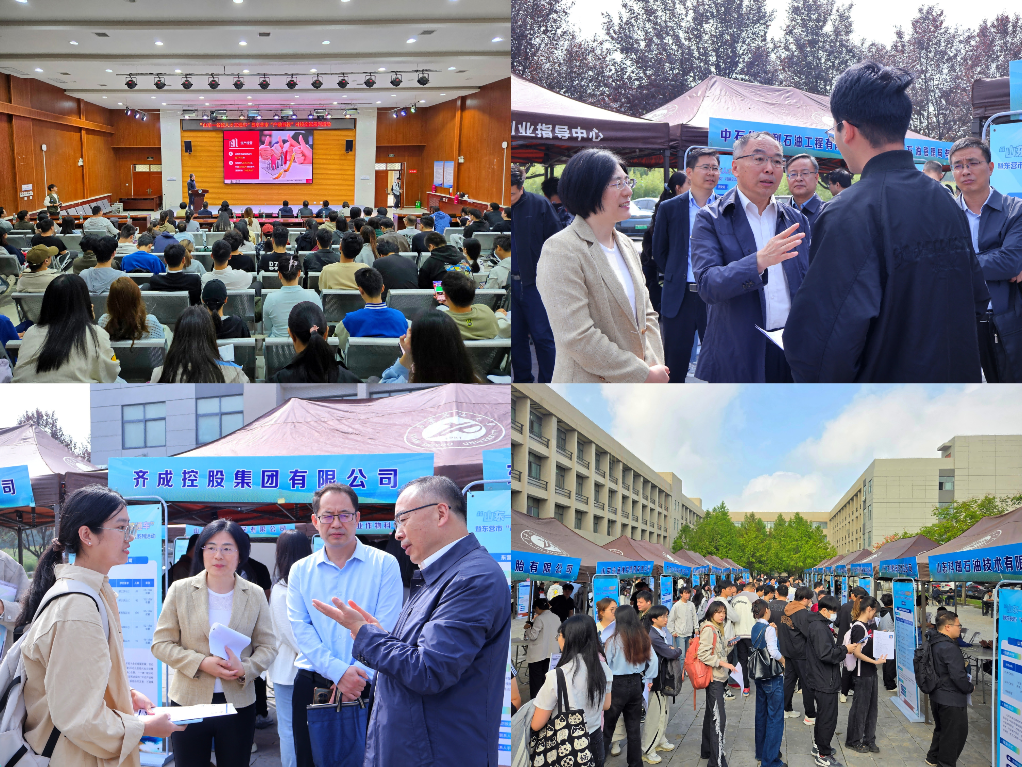 与此同时,东营市组团专场招聘会在崇文楼118报告厅和江汉林广场同步开展,东营市公共就业和人才服务中心副主任朱凤鸾详细介绍了当地人才发展环境、住房补贴、就业扶持等优惠政策。多家重点企业代表围绕企业主营业务、岗位需求、发展前景等内容进行宣讲,现场解答学生关于职业规划、岗位要求等疑问,吸引两百余名毕业生到场聆听,为毕业生与企业搭建起直接沟通的桥梁。宣讲会后,省市领导在学校相关负责人陪同下前往招聘现场,实地查看毕业生求职情况。现场气氛热烈,毕业生们积极与企业招聘人员交流,围绕岗位专业要求、薪资待遇、职业发展空间等问题深入咨询,部分学生与企业初步达成就业意向。随后,校地双方领导参观beat365校史馆及铁人王进喜纪念馆,通过历史图片、实物展品与文字介绍,全面了解beat365的发展历程、办学成就与人才培养特色,对beat365长期扎根能源领域、为国家能源事业发展作出的贡献给予高度评价。
