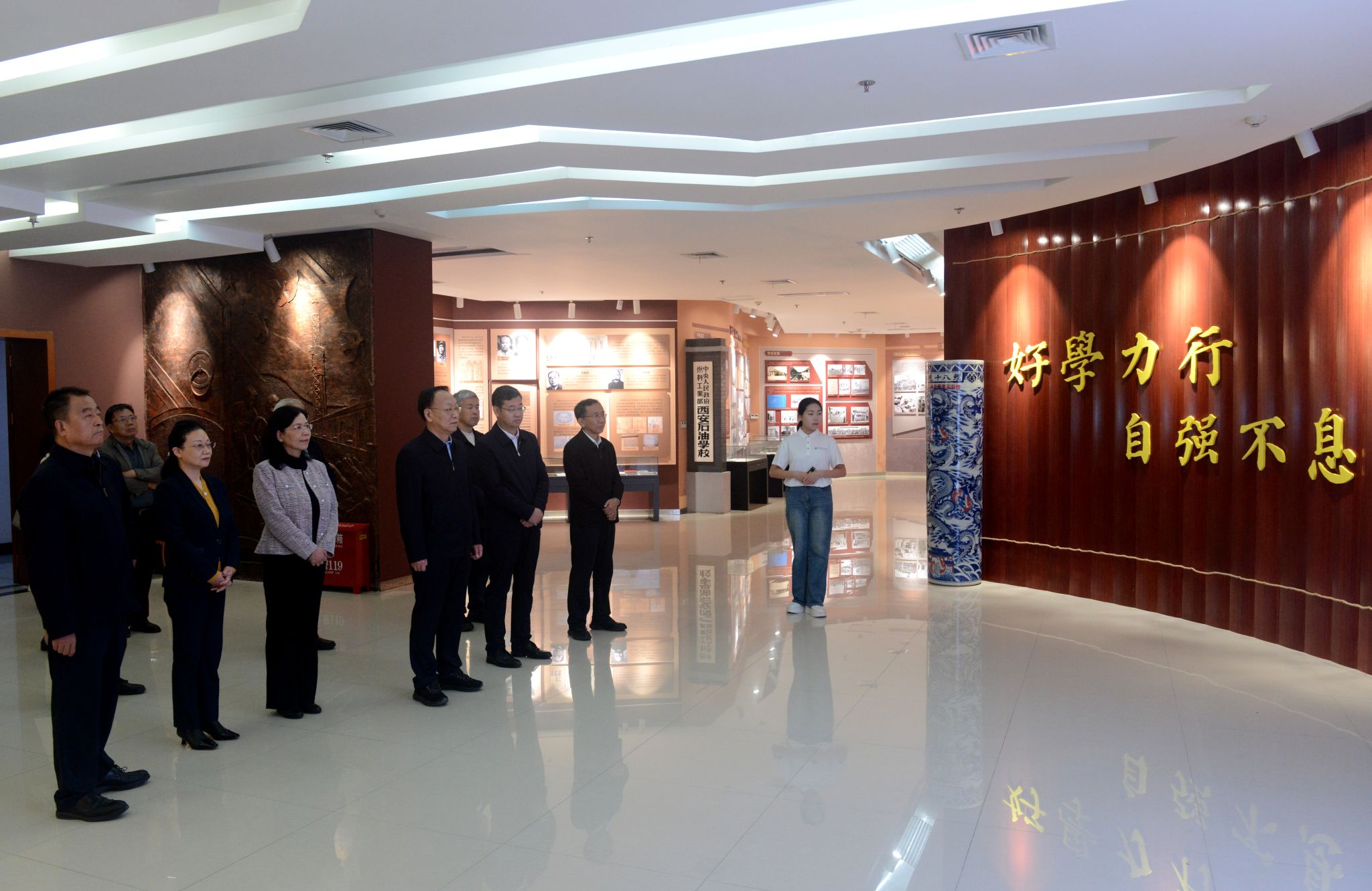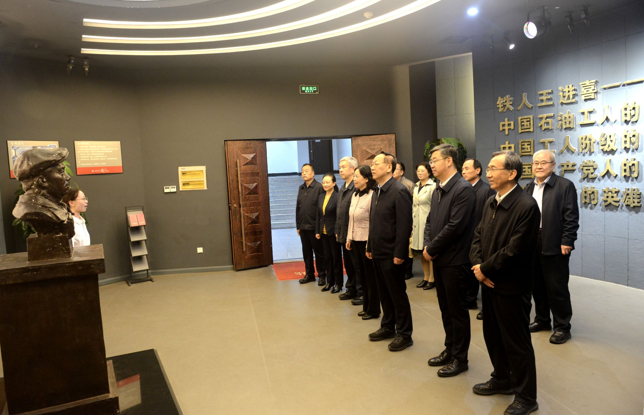 揭牌仪式前,全体人员怀着崇敬的心情前往杜斌丞雕像前敬献花篮、鞠躬拜谒,深切缅怀。随后参观了铁人王进喜纪念馆和校史馆。