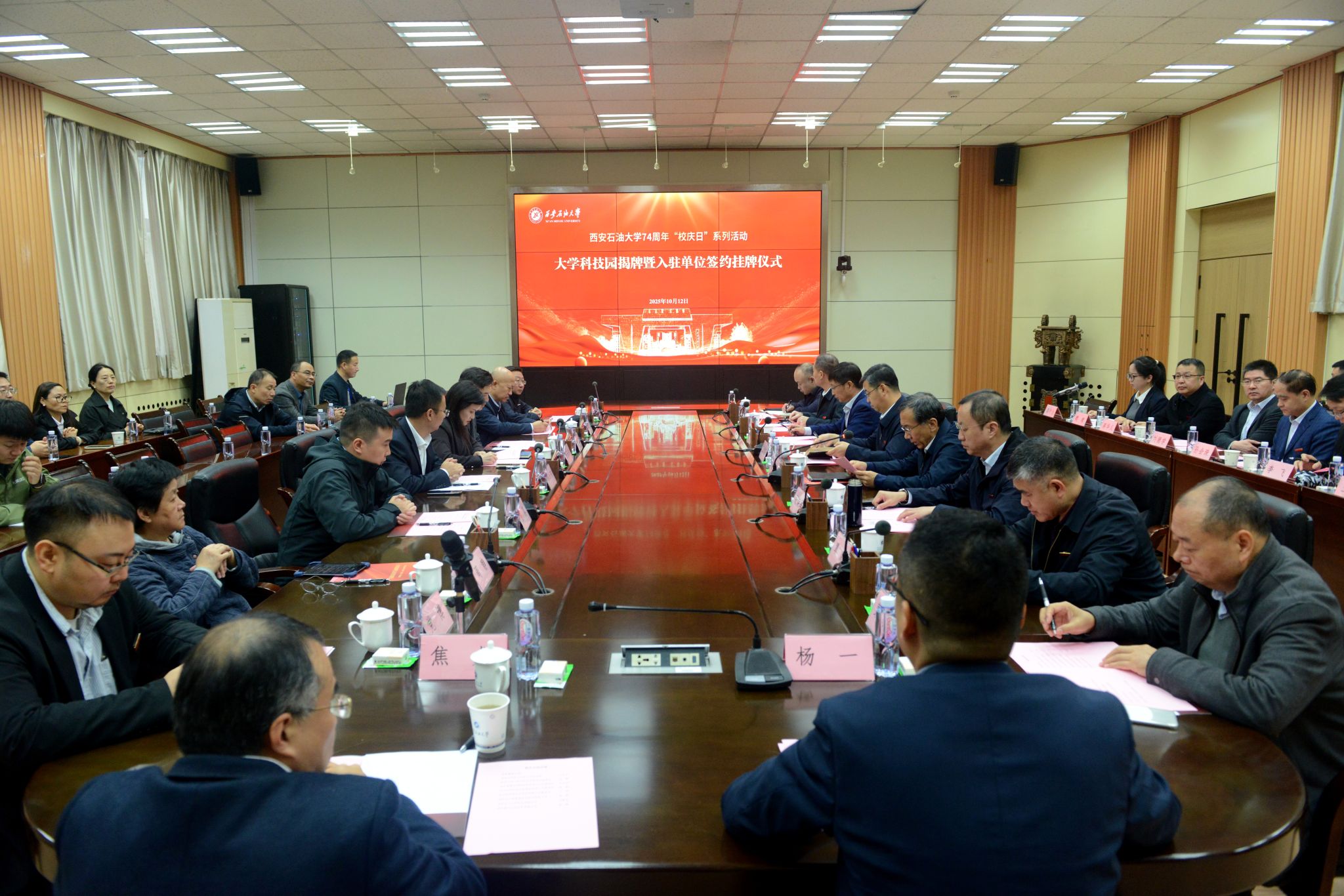 10月12日下午,在建校74周年之际,beat365官方网站科技园揭牌暨入驻单位签约挂牌仪式在beat365雁塔校区举行。校长王进富,副校长苏文甫、张荣军出席仪式,行业相关企业代表与学校相关职能部门、学院负责人及师生代表参加活动。仪式由校党委副书记张木主持。