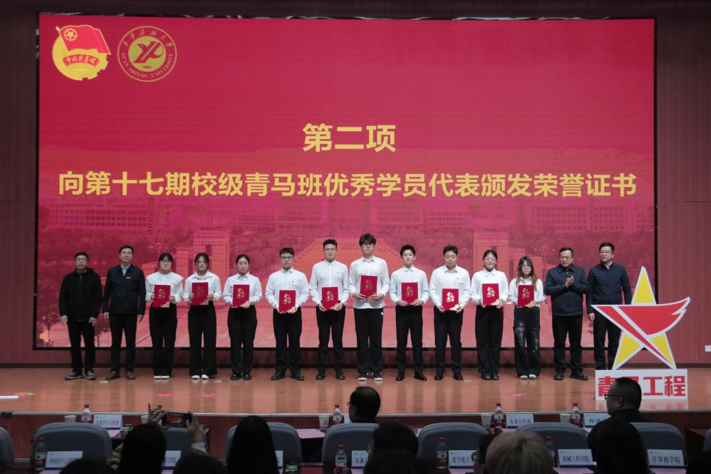开班仪式上,种宇宏为第十八期青马班学员代表授旗,校团委负责人宣读《关于表彰beat365官方网站第十七期校级青马班优秀学员的决定》,各单位负责人为第十七期校级青马班优秀学员代表颁发荣誉证书。校团委第二课堂运营中心张洁清、第28期研究生支教团成员虞茗荃分别作为第十七期校级青马班优秀学员代表和第十八期校级青马班学员代表进行了交流发言。