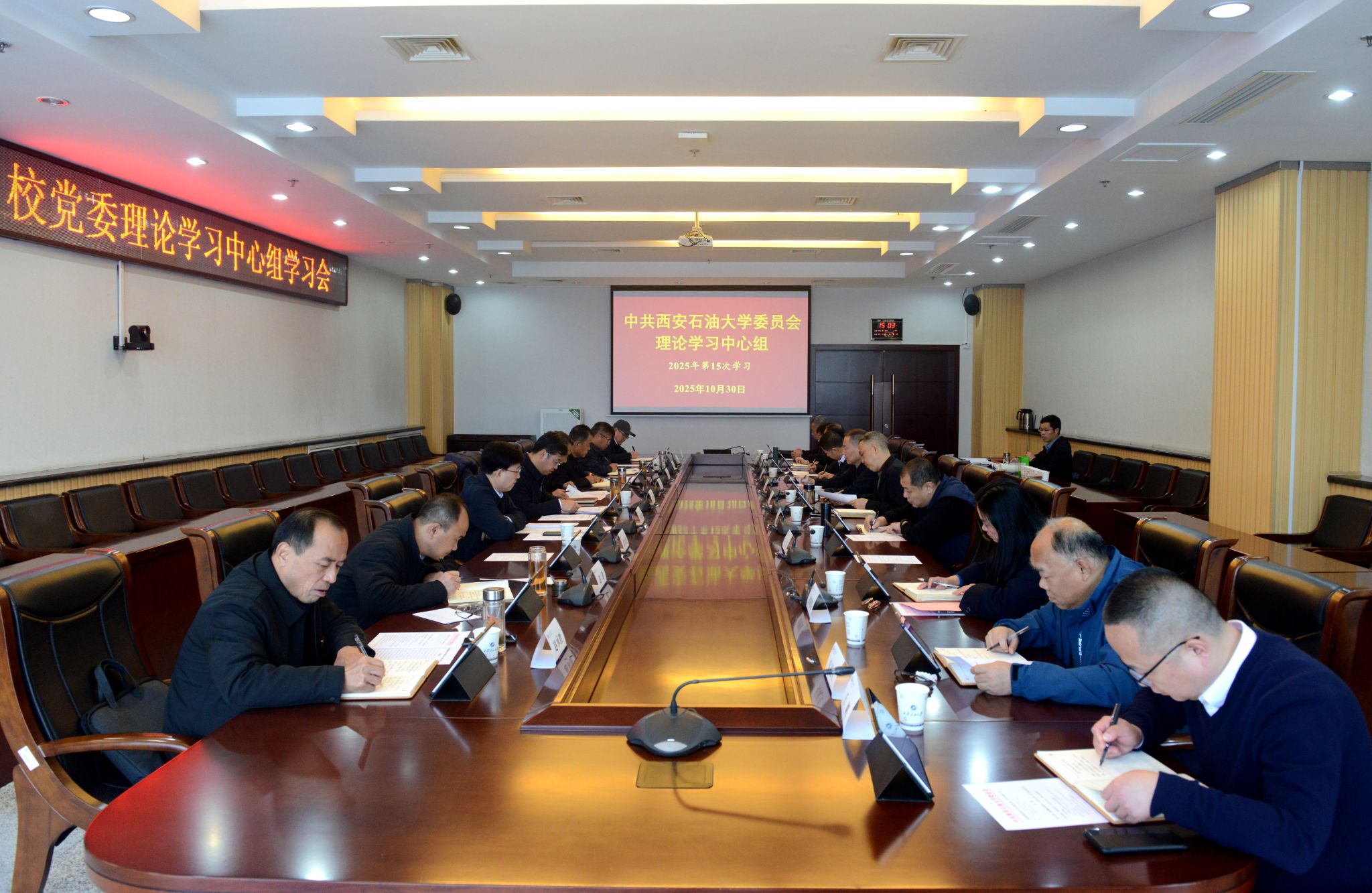 10月30日下午,校党委理论学习中心组2025年第15次学习会在鄠邑校区第二会议室召开,深入学习领会党的二十届四中全会精神,习近平给中国农业大学全体师生、天津大学全体师生的重要回信精神,以及《习近平谈治国理政》(第五卷),中省有关会议、文件等。校党委副书记、校长王进富主持并讲话,校党委理论学习中心组成员参加会议。