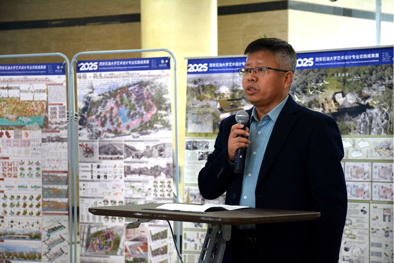 人文学院副教授史巍代表导师发言。他表示,本次实践成果展是各位设计硕士研究生将学术与设计进行融合的大胆尝试,每件作品的背后都凝聚着各位导师和同学们的辛勤汗水、不懈努力与执着追求。大家用艺术设的表段诠释着对美的理解和对当下社会问题的关注,不断提升自己发现问题、分析问题、解决问题的能力。