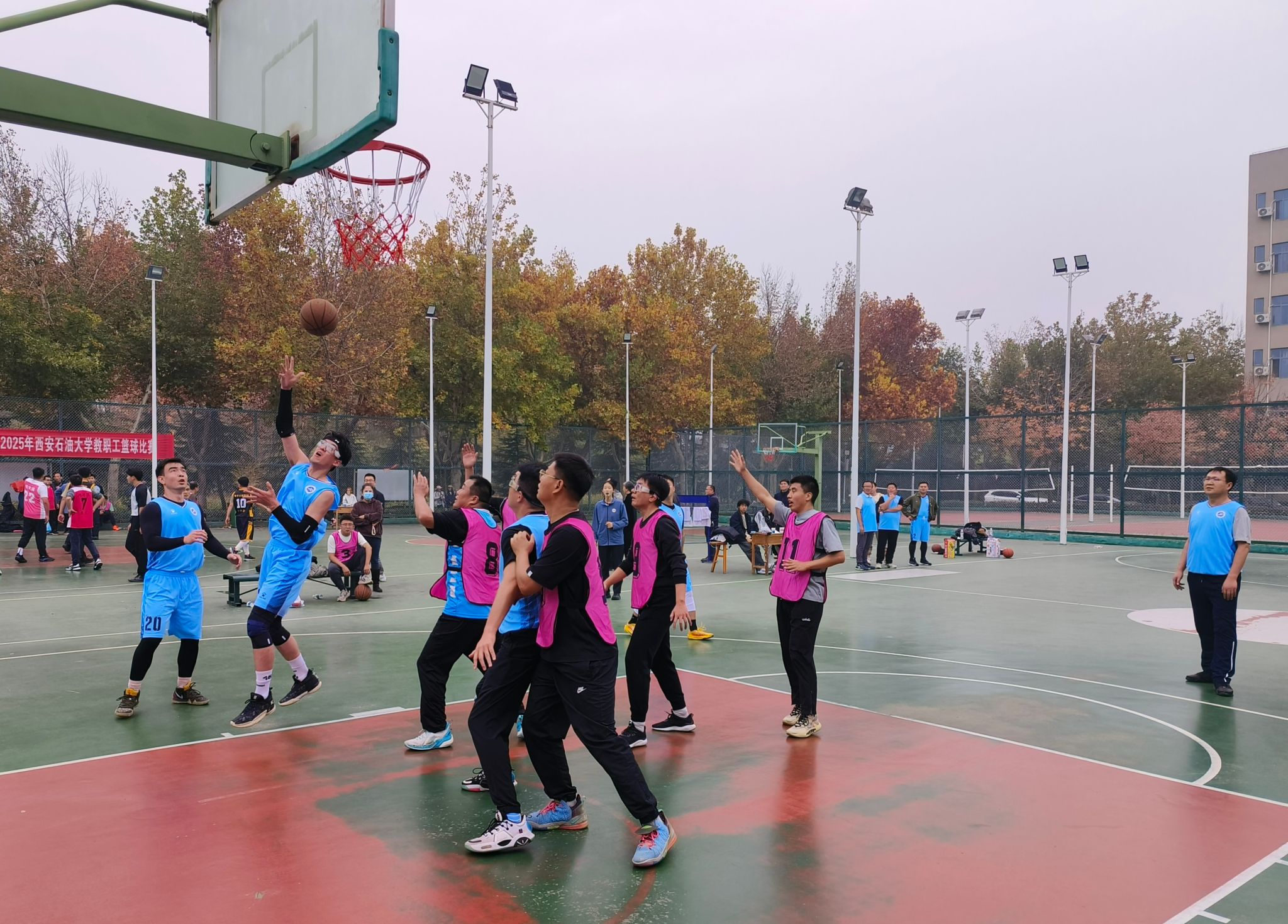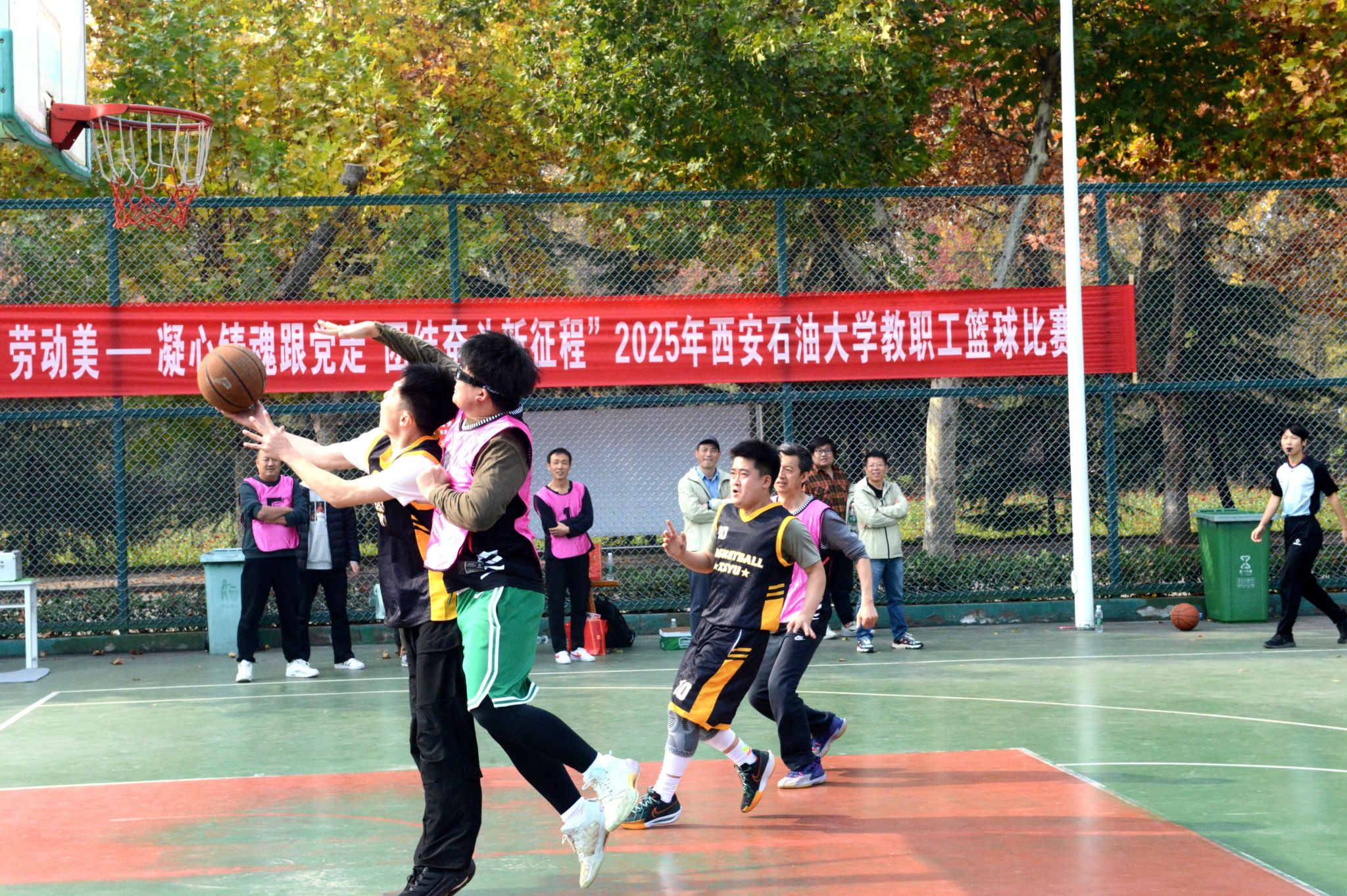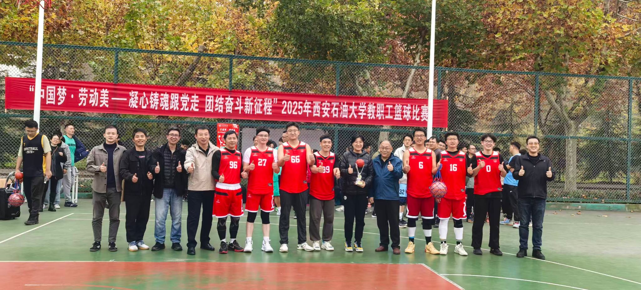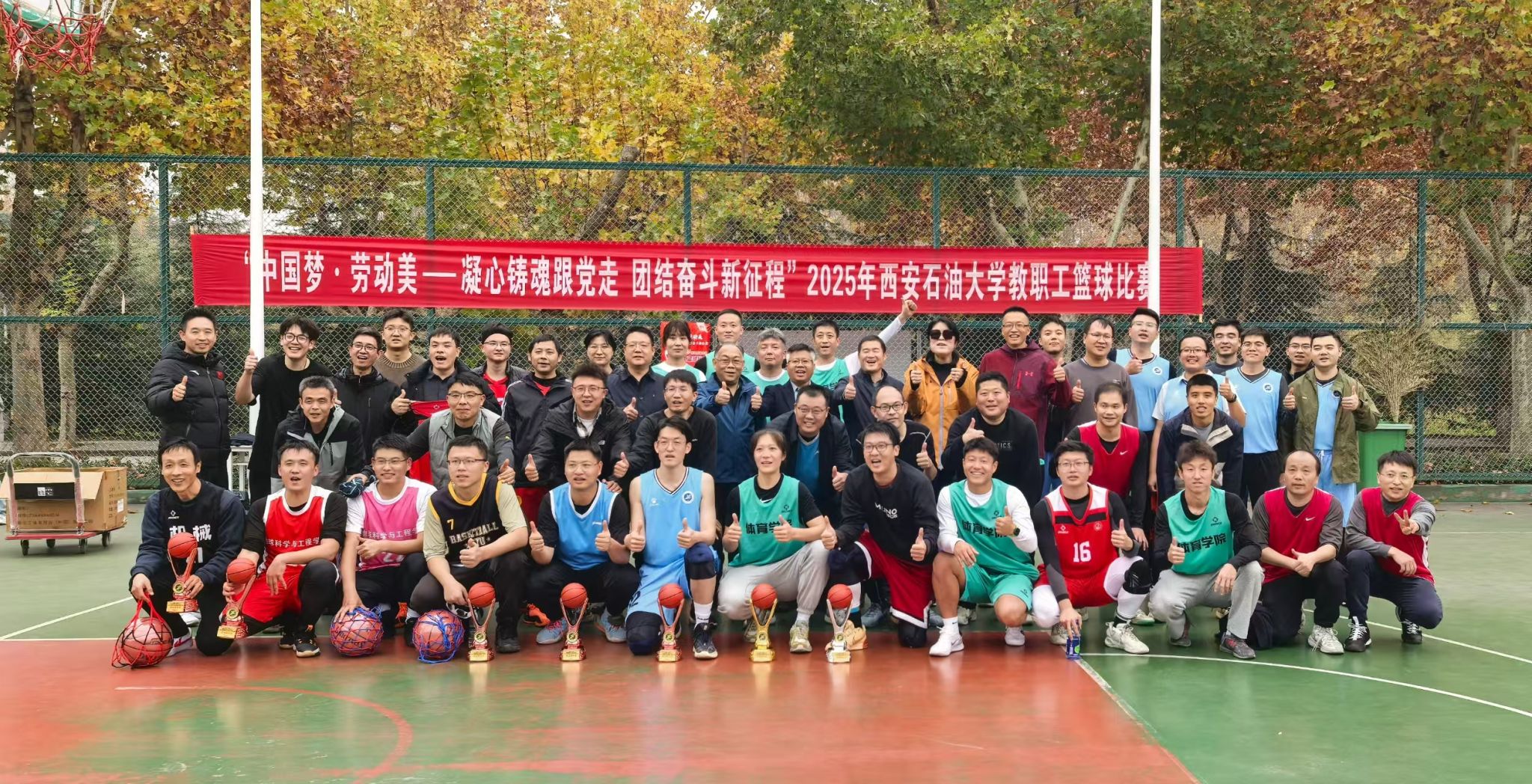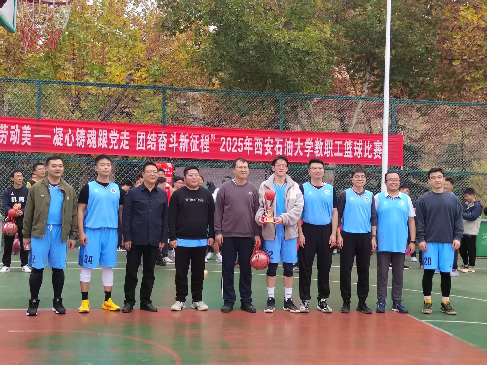 为丰富教职工业余文化生活,增强团队凝聚力,营造积极向上的校园文化氛围,由校工会主办、体育学院承办的“中国梦 劳动美——凝心铸魂跟党走 团结奋斗新征程”2025年beat365官方网站教职工篮球赛于10月20日在beat365鄠邑校区东篮球场火热开赛。本次赛事吸引了来自全校基层工会13支代表队、共计近110名教职工运动员踊跃参与。经过3周、30场紧张激烈的比赛角逐,赛事于11月5日圆满落下帷幕。