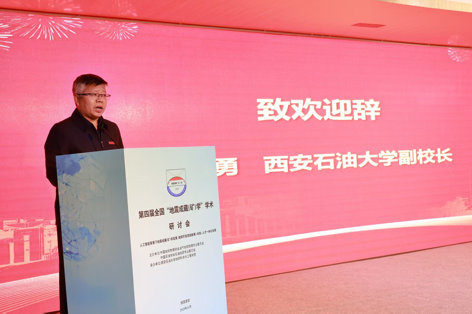 特邀嘉宾俄罗斯自然科学院外籍院士、中国石油集团咨询中心高级专家赵贤正教授代表会议主办单位致辞。赵贤正表示,地震成藏(矿)学自2009年提出以来,已在理论与技术上取得显著进展,成为指导复杂地质条件下油气勘探的重要支撑,并呼吁广大科技工作者加强学科交叉与产学研合作,推动该学科向纵深发展,为我国能源勘探开发提供更强有力的理论和技术保障。