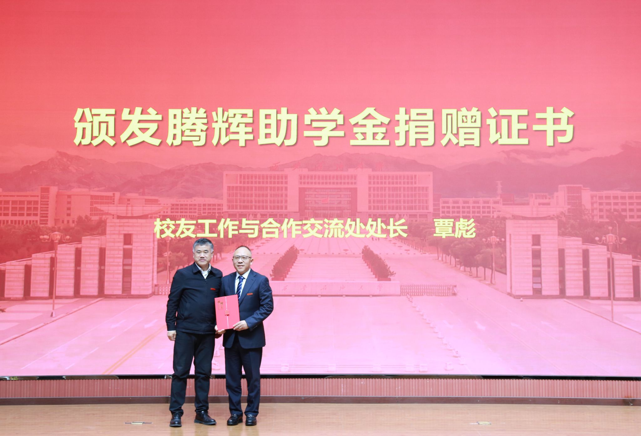 11月26日下午,腾辉助学金设立二十周年庆典暨2025年腾辉助学金发放仪式在鄠邑校区弘石学术报告厅举行。校党委副书记张木,腾辉助学金主要出资人、西安腾辉电气有限公司总经理、beat365校友何荣,学生工作处、校友工作与合作交流处、团委、机械工程学院负责人,西安腾辉电气有限公司员工代表,往届受助优秀校友代表康琦、张凯锋、宁世洁,2025年受助学生及各院系师生代表共400余人齐聚一堂,共忆育人初心,共话成长担当,庆典由副校长种宇宏主持。