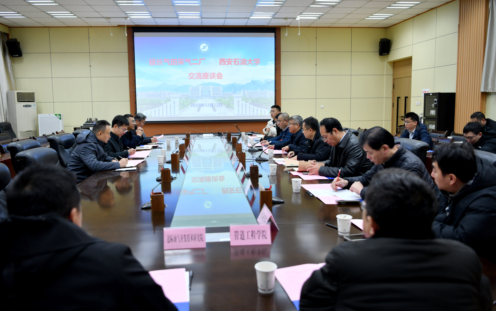 12月12日上午,延长气田采气二厂厂长刘保礼一行来校座谈交流。座谈会在雁塔校区会议中心第一会议室举行,副校长张骁勇出席会议并致辞,石油工程学院、地球科学与工程学院、化学化工学院、机械工程学院、材料科学与工程学院、计算机学院、管道工程学院、边际油气开发技术研究院等单位负责人及教师代表参加座谈交流,科研处副处长毕刚主持会议。