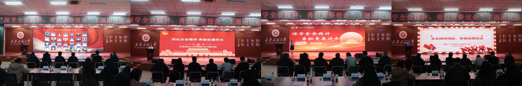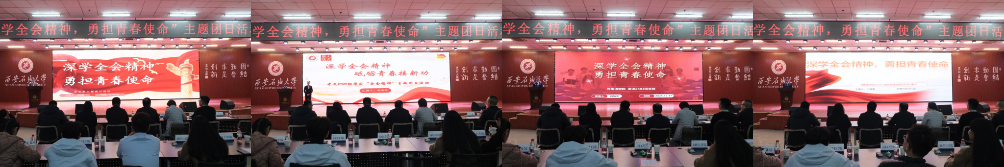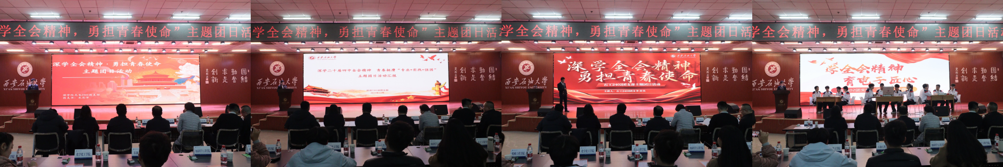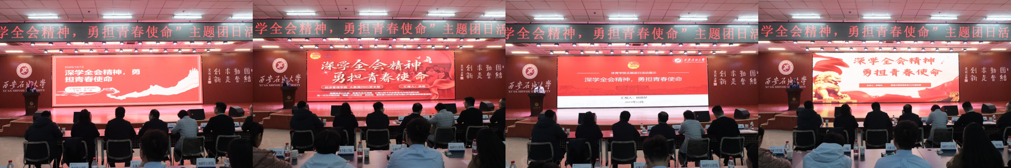 本次活动自启动以来,各基层团支部围绕主题开展丰富多样的团日活动,经院(系)择优遴选,16个优秀团支部脱颖而出进入校级展示。展示现场,各团支部紧扣“深学全会精神,勇担青春使命”主题,通过PPT汇报、情景剧演绎、主题演讲、短视频展播等多种创新形式,全方位呈现团组织建设工作成效。从理论学习常态化机制构建到“专业+实践+强国”的融合实践,从志愿服务的暖心瞬间到校园文化中的青春风采,各支部以详实数据、鲜活案例和深刻感悟,生动诠释了新时代青年大学生的理想信念与责任担当。