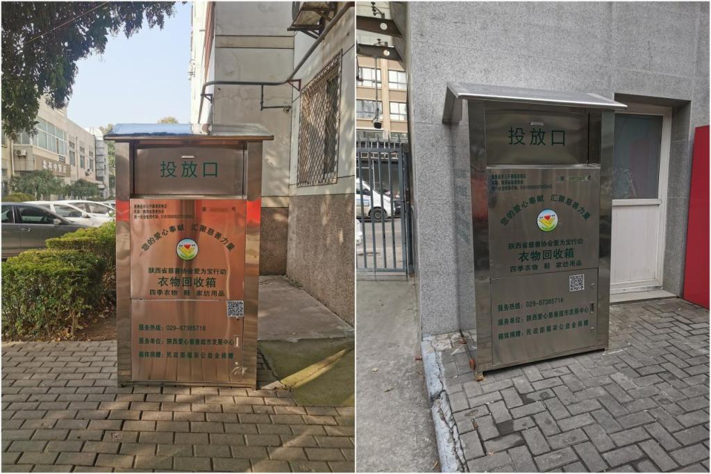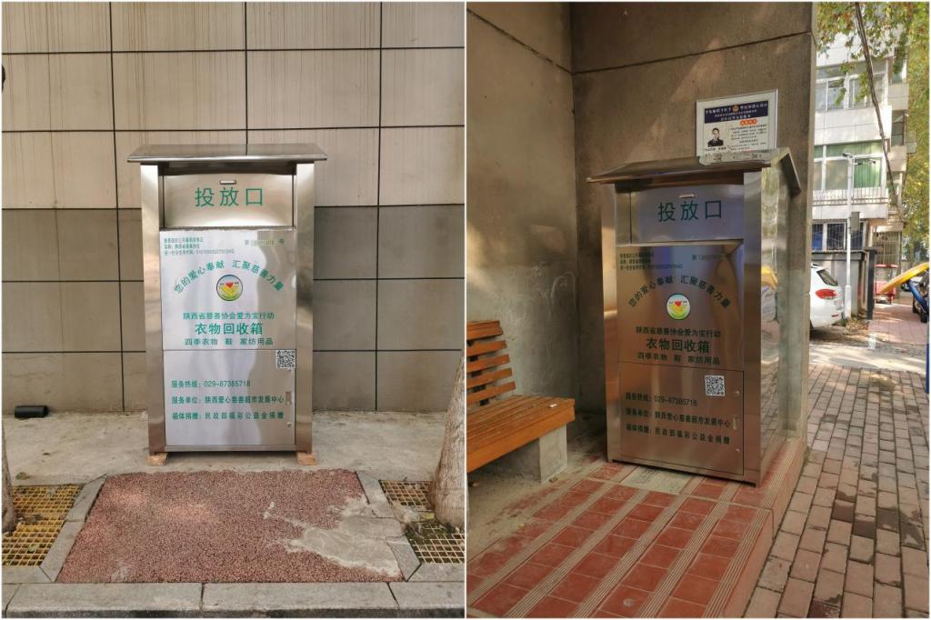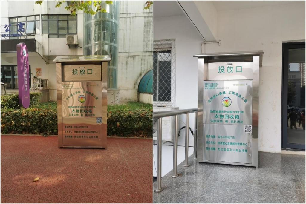 为深入贯彻习近平总书记“推动形成绿色发展方式和生活方式”的重要论述,切实解决学校师生、居民家中产生旧衣物的处置难题,在前期充分调研论证的基础上,石油大学社区与陕西省慈善协会携手,于11月14日起已分别在学校雁塔校区南院住宅区、北院生活区和明德校区设立了旧衣物回收箱,旨在推广绿色低碳生活方式,弘扬扶贫济困,传递爱心,传播慈善文化精神。