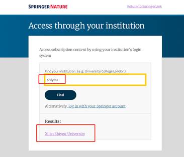第三步:在搜索框里面输入“shiyou”,点击“find”,选择“Xi’an Shiyou University”,即可正常使用。