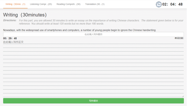 2、确保找一个时间段充足的时间答题,中途不能退出,需一气呵成,一旦开始答题就必须直到提交才算模考结束。