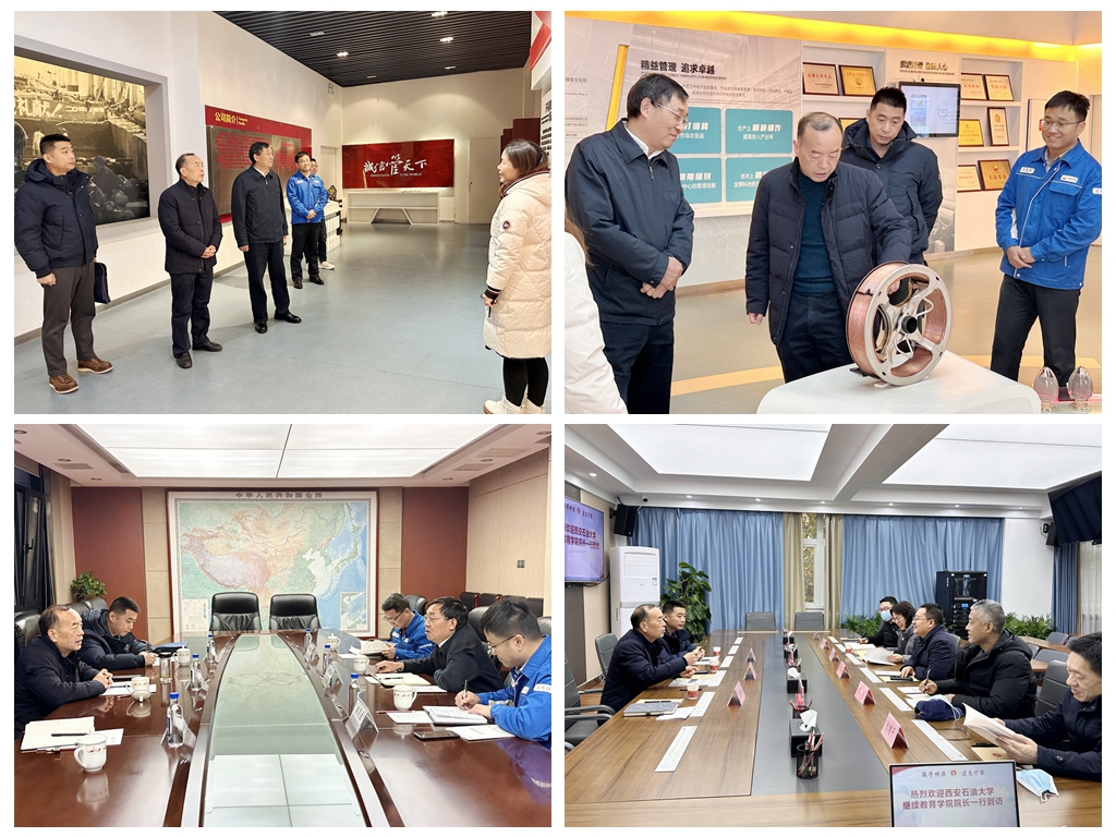 在宝鸡石油钢管有限责任公司,谈建勤一行在总会计师黄桥林陪同下参观了展览馆,了解产品发展应用及“制造+服务”的开展情况。座谈交流中,谈建勤简要介绍了学校和学院近年来的发展及取得的成绩,详尽介绍了学院培训工作和学历教育开展情况,重点推介了财务管理、人力资源等特色培训项目;公司人力资源部、财务处相关负责人介绍了人才培养、员工培训等方面的基本情况和迫切需求。双方就员工培训、学历提升等方面达成若干合作意向。