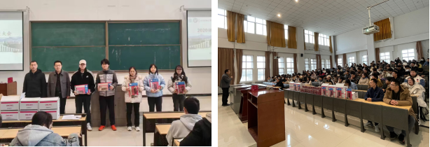暖心礼包祝福,鼓舞考研士气。12月14日中午,学院在天工楼115教室召开了2020级考研冲刺大会,学院党委书记林红先、党委副书记张云姿、学生工作办公室主任郭媛、毕业班辅导员马黎以及全体考研学生参会。林红先书记代表学院向同学们致以亲切关怀和考研祝福,充分肯定了同学们的勤奋付出和踏实认真,希望同学们在紧张的冲刺阶段能够坚定信心,调整心态,坚持就是胜利,同时叮嘱同学们要充分调整好身心状态,合理安排学习与休息,以饱满的精神和乐观的态度从容应考。学院向考研学子们送出了印有学院院徽及“梦想成真”等美好祝愿的“考研加油大礼包”,礼包有考试套装以及订制书签、饮料等,鼓励同学们在考研路上披荆斩棘,梦想成真。