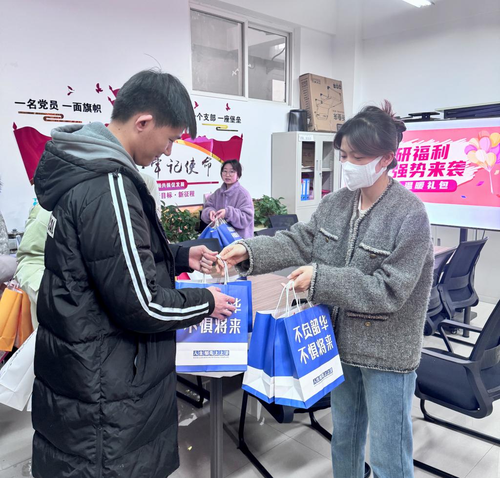 会后,学院为每位考研学生精心准备了“考研温暖大礼包”。包括需要万事“具”备的考研文具袋、不惧寒冬的暖手宝、提神醒脑的咖啡、透明玻璃杯提醒同学们多喝水,临近考试注意身体,以饱满的精神状态迎接考试,每位同学的礼品袋上也是美好的寓意,祝愿大家未来可期、前程似锦、好运将至,还有学院为大家准备的金榜题名贺卡,为同学们一路以来的坚持点赞,并祝福每一位赶路人都能一战成“硕”,暖冬心事成,幸运伴你行!暖心的礼包让考研学子倍感温暖,倍加振奋,同学们纷纷表示会更加坚定考研必胜的信心,会以更加努力学习的实际行动回报学院的关怀,迎接未来的挑战。