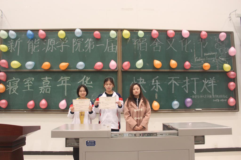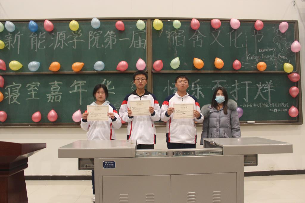 12月10日晚,新能源学院首届宿舍文化节决赛暨闭幕式在鄠邑校区天工楼115室举办。本次比赛由学院团委、学生会指导老师卢筱佳,2022级辅导员秦莹颖,以及学生会主席团成员担任评委,2023级全体学生参加此次活动。