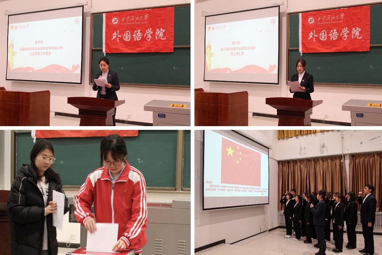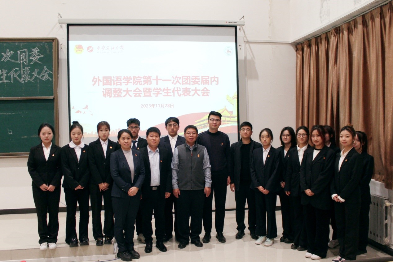 11月28日晚,外国语学院第十一次学生代表大会暨团委换届大会在鄠邑校区天工楼115召开。学院党委副书记王业青、校团委副书记孙浩哲、学院团委书记周宇、学院学生会指导老师,校学生会、各兄弟院(系)团委及学院学生代表100余人参加大会。