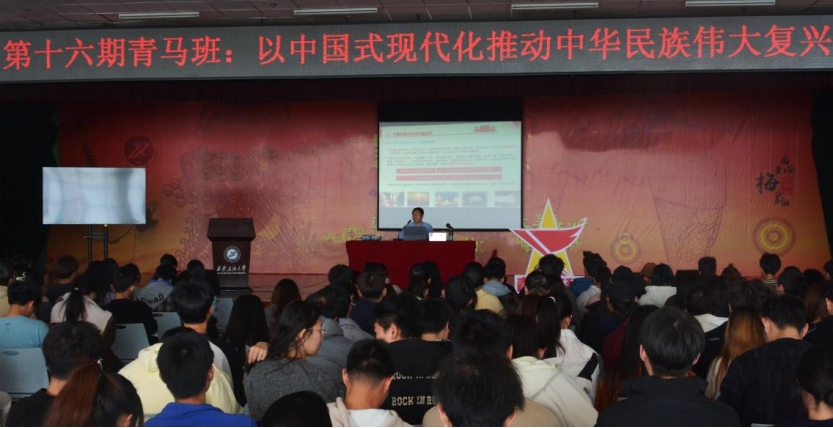 王亮以《以中国式现代化推动中华民族伟大复兴》为题,围绕中国式现代化的概念、中国式现代化的鲜明特色、中国式现代化的本质要求、中国式现代化的重大原则等方面展开具体讲解,特别是通过丰富实际案例,以理论与实践相结合的方式,重点阐释了中国式现代化的科学内涵、核心要义、实践要求,并结合个人学习与工作经历,勉励全体“青马班”学员勿忘昨天的苦难辉煌,无愧今天的使命担当,不负明天的伟大梦想,做到以史为鉴、开创未来、埋头苦干、勇毅前行,让青春在全面建设社会主义现代化国家的火热实践中绽放绚丽之花。