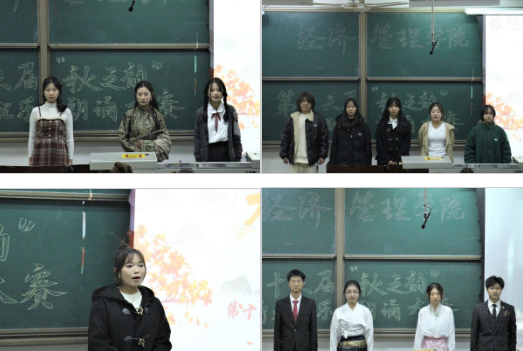 为进一步加强校园美育环境建设,提高学生的审美和人文素养,促进学生全面发展,经济管理学院于11月16日在鄠邑校区博览楼139教室举办第十六届“秋之韵”诗歌配乐朗诵比赛,学院团学指导老师任仰,2022级辅导员老师王业林及学院团学干部代表出席比赛并担任评委。比赛由黄俊杰、杨思颖同学主持。