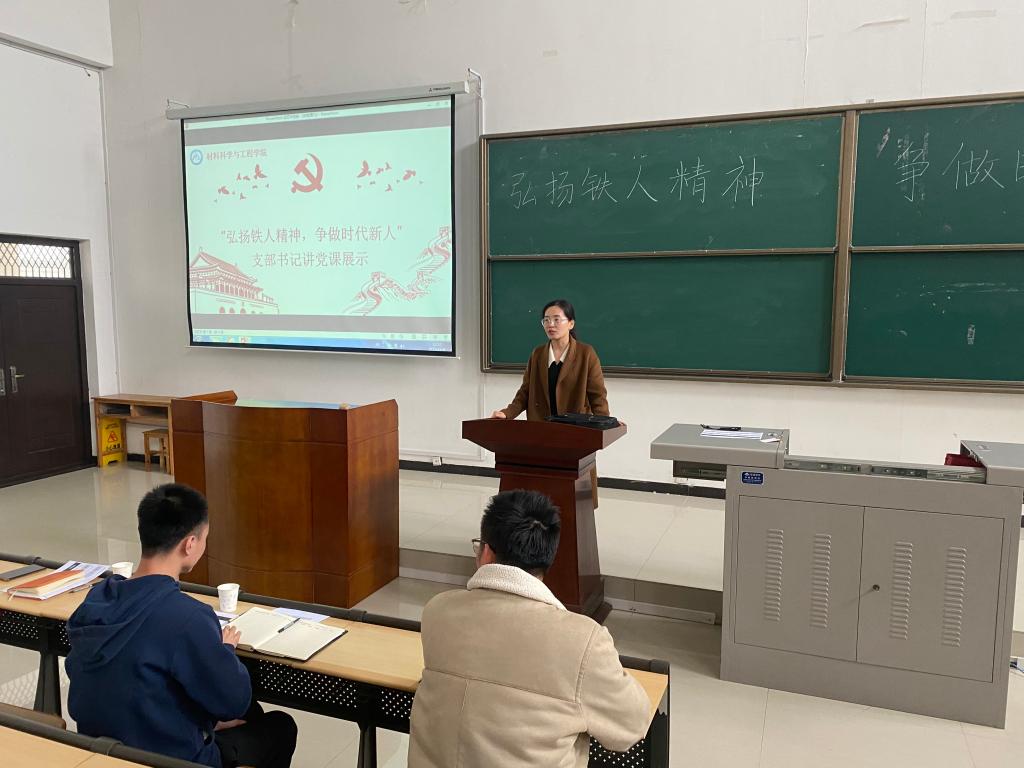 为继承和发扬党的优良传统与作风,引导学生党员继承铁人精神、争当合格党员,扎实推进党支部建设,11月9日下午,材料科学与工程学院在鄠邑校区天工楼115教室举办“弘扬铁人精神,争做时代新人”学生党支部书记讲党课比赛活动,学生工作办公室主任郭媛,各年级辅导员,全体学生党员参加,2021级辅导员周鑫主持。