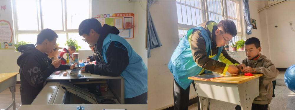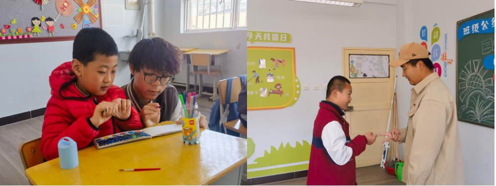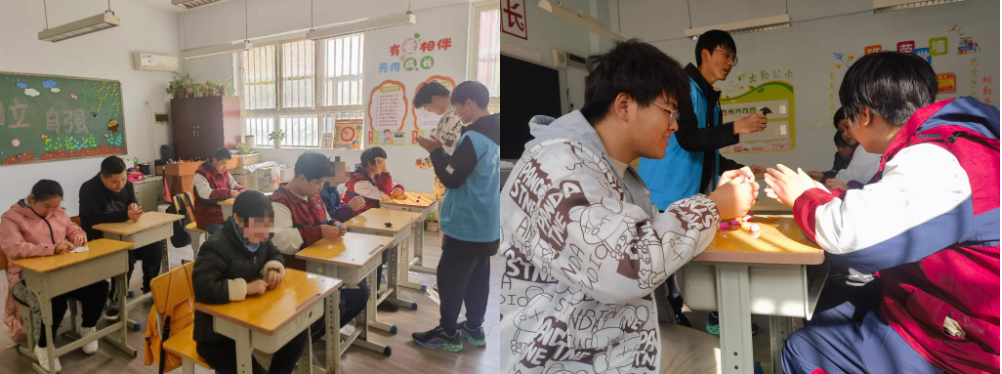 志愿者们陪着孩子们一起看书、画画,和孩子们玩起了“剪刀石头布”和“我比手语你来猜”的游戏,一时间,整个教室充满了孩子们和志愿者们的欢声笑语,其乐融融。通过游戏互动,也拉近了志愿者与孩子们心与心的距离。志愿者们说:“小朋友是活泼可爱的小天使,和他们一起互动、学习感觉非常开心。我希望自己能够更加深入参与到特殊教育志愿服务活动中,带给小朋友更多快乐!”