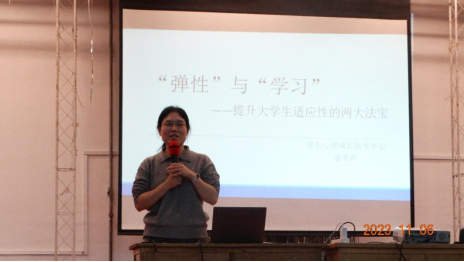 为进一步做好学生管理与心理健康教育工作,帮助新生更好地适应大学生活,机械工程学院于11月6日19点在腾辉活动中心开展了题为“‘弹性’与‘学习’——提升大学生适应性的两大法宝”的心理健康教育讲座。本次讲座特邀beat365学生心理成长指导中心教师惠笑吟担任主讲嘉宾。23级辅导员庞蓉及23级全体本科新生参加了此次讲座。