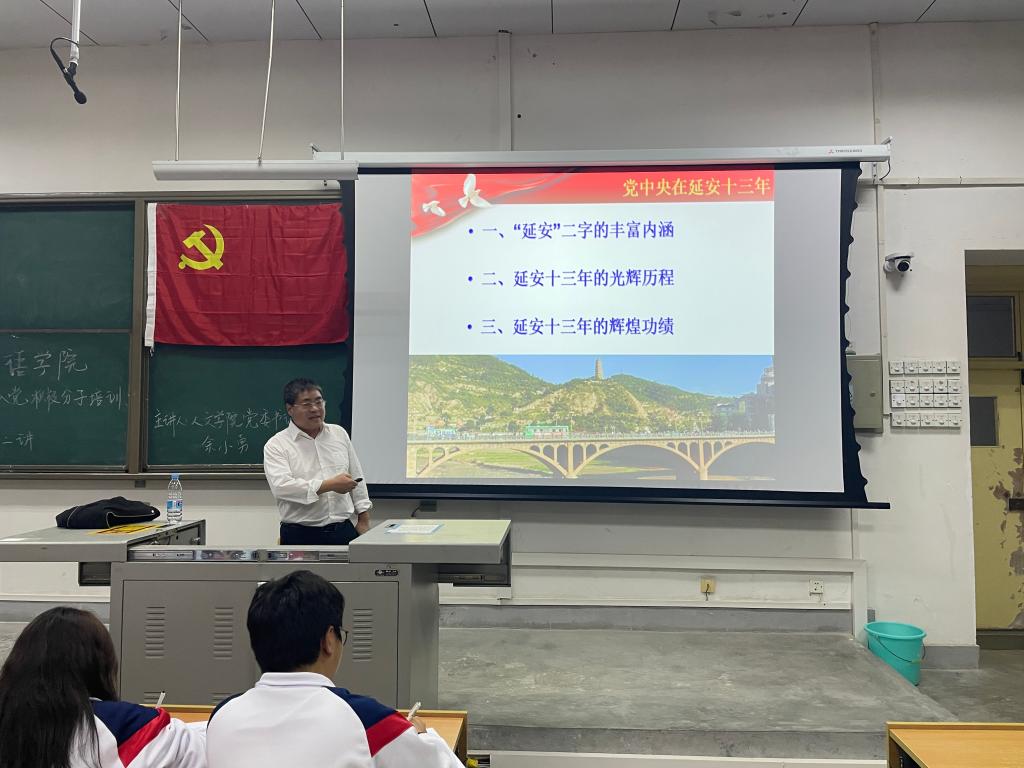 2023年11月2日晚,外国语学院在博览楼234教室举行第十二期入党积极分子培训班第二讲。人文学院党委书记余小勇担任主讲,党课主题为《党中央在延安十三年》,外国语学院196名入党积极分子参加了此次党课学习。