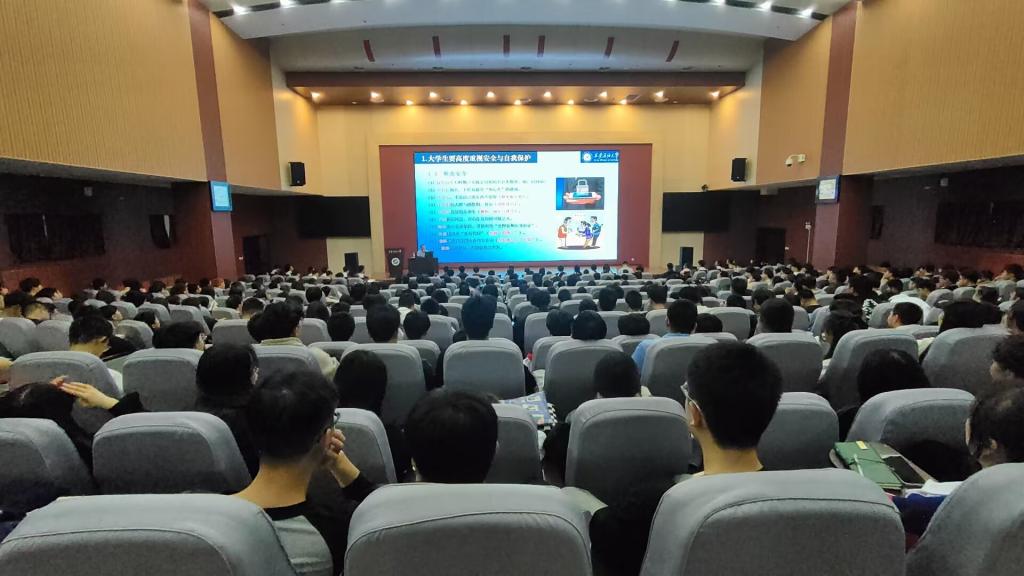 马小刚副书记从大学生要高度重视安全与自我保护、校内各类安全事故及预防、大学生心理健康、大学生安全的措施和技巧、大学生要避免陷入犯罪深渊五个方面展开讲授。在120分钟的时间里,马老师用诙谐幽默的语言、亲身的经历、清晰的思路与鲜活的事例向同学们展现了大学生安全与保护的重要性与必要措施。他强调,大学生要高度重视安全与自我保护,不论是宏观上的国家安全观还是微观上的个人出行安全、饮食安全都应高度重视,同时要重点关注信息时代背景下滋生的电信诈骗、校园贷等问题。他详细分析校内人际交往安全,个人财产安全,用火用电安全,实验室安全及运动安全等细节。马老师提示所有同学,作为一名新时代大学生,应学会合理管理情绪,悦纳自己,学会承受挫折与压力并用坚强的内心摧毁阴霾。此外,马老师要求所有同学主动远离不良嗜好与危险场所,在乐观面对大学生活的同时保持警惕,遇到违法违规行为及时举报,做一名遵纪守法,道德高尚的新时代大学生。最后,马老师以此次讲座为契机,提醒同学们要学好数学和英语,提前做好自己的职业生涯规划,并就同学们的学业发展提出了三点建议。