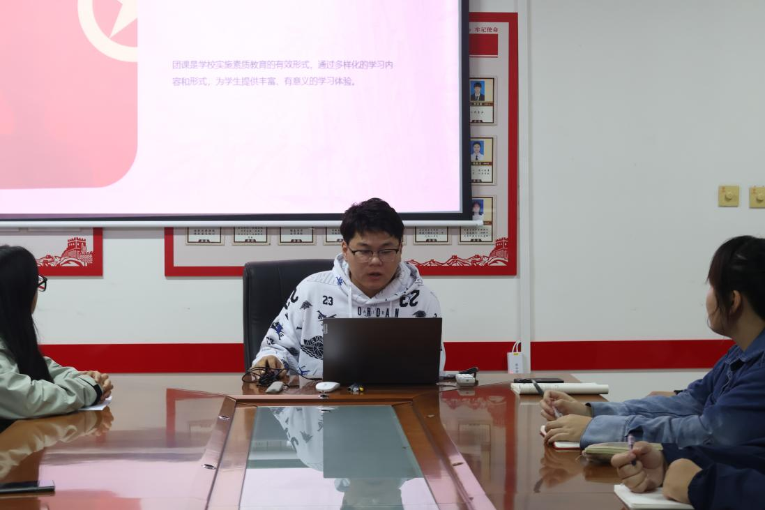 会议上,学院团委组织部部长张宇涵组织同学们从团课简介、团课的内容、团课的形式、团课的效果等四个方面学习了团课相关知识。他还为同学们举出中石化集团、华为集团等单位开展团课培养青年员工并取得显著成效的案例,强调的团课学习的重要性,并组织了新入团积极分子们学习团歌,接受思想熏陶,培养爱党爱国精神,增强责任意识。