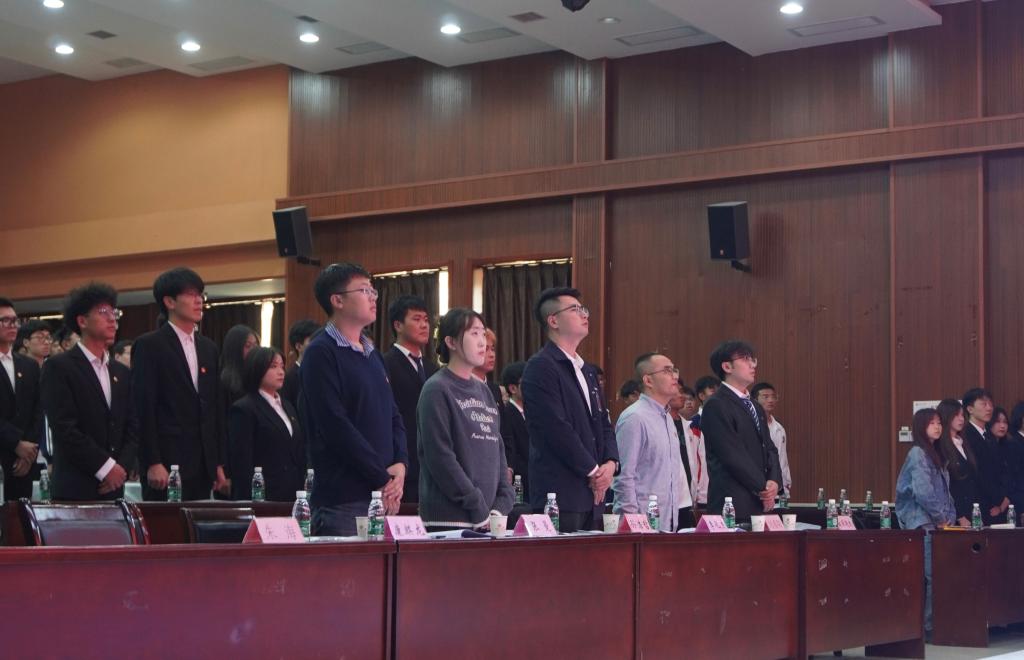 按照大会程序,新任团委委员、第二届学生会委员和主席团成员面向团旗进行了宣誓。