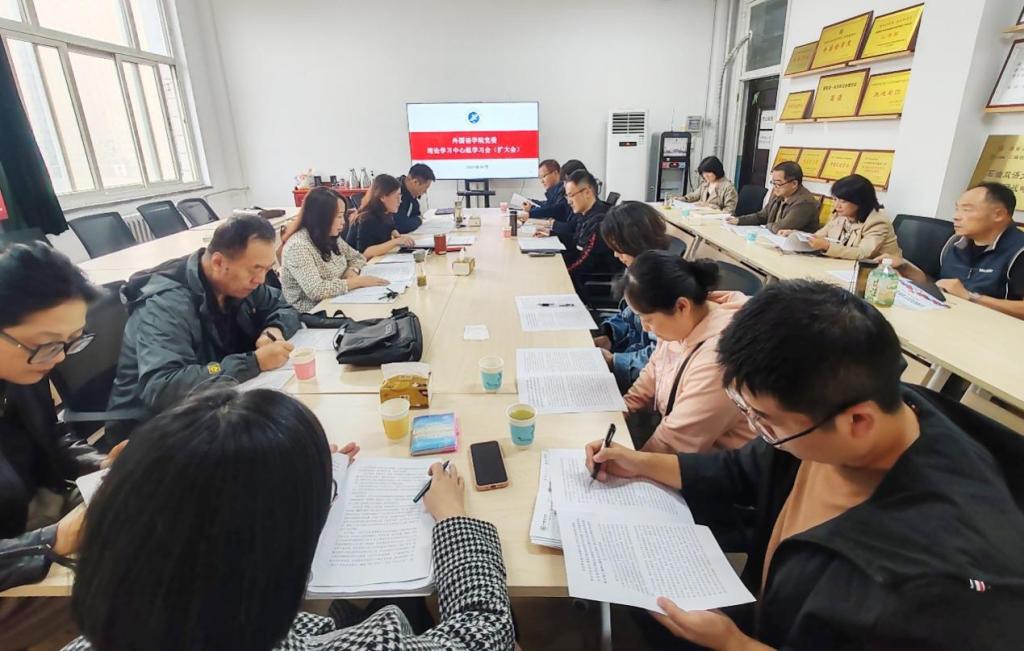 10月27日下午,外国语学院在雁塔校区华油能源楼727会议室召开党委理论学习中心组学习扩大会,学院党委委员、班子成员、理论学习中心组成员、各系(部)主任参加会议。会议由学院党委书记田虹霞主持。
