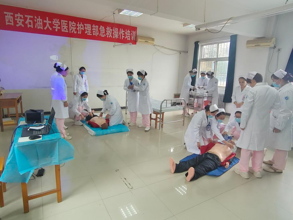打铁还需自身硬。为了做好军训期间急救演练工作,校医院高度重视,积极研究部署,护理部积极组织日常操作训练,在活动前对医务人员开展了急救知识再培训,确保医护人员能够全面掌握急救技术与熟练使用急救仪器。