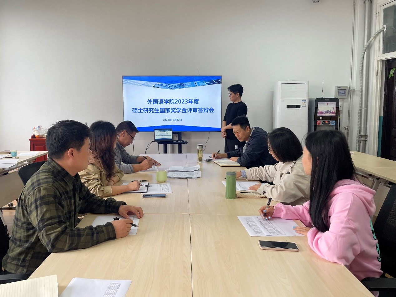 10月12日下午,外国语学院在雁塔校区华油能源楼727会议室召开2023年研究生国家奖学金和中国石油奖学金答辩评审会,院党委副书记王业青、副院长陈武、研究生导师代表秦艳霞、学工办主任周宇、研究生辅导员张靓以及研究生代表参加会议。会议由院党委书记田虹霞主持。