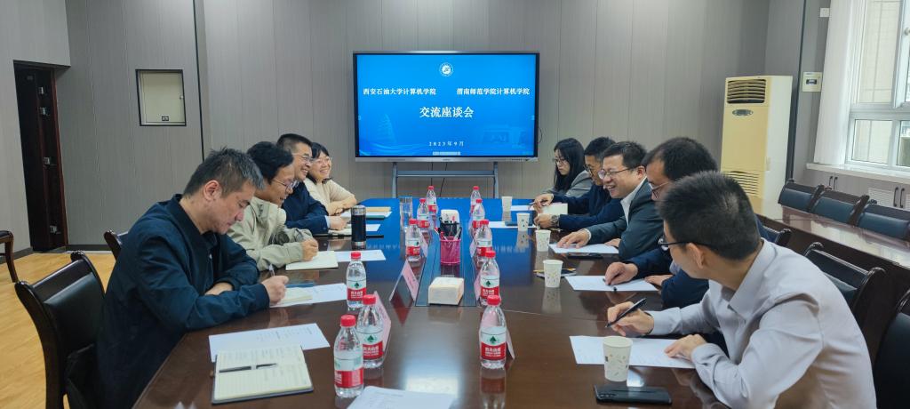 9月26日上午,计算机学院同渭南师范学院计算机学院杨方琦院长一行5人开展交流活动,交流座谈会在雁塔校区东方石油楼404会议室举行。