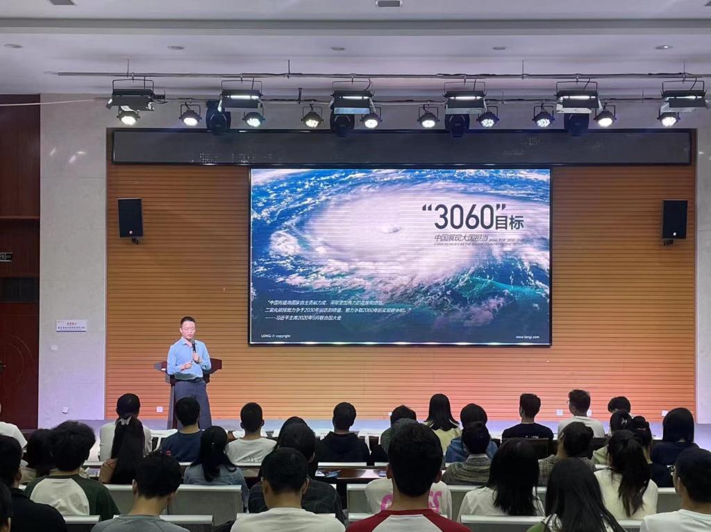 会上,宋海洋首先对隆基绿能进校选聘毕业生表示衷心的感谢,并详细介绍了学院概况、专业设置、人才培养和学生就业意向等情况。他表示,新能源学院自成立以来,积极构建校企联合办学新格局,稳步创造学院协同育人外循环,学院首届毕业生人才培养成效较为显著,希望双方能继续在人才培养、课程设置、党建共建及校企联合培养平台搭建等各方面保持密切合作,以此次选聘毕业生为契机进一步加深彼此了解,加强交流沟通,拓宽合作领域。紧接着,胡铸详细介绍了本次招聘的岗位和专业要求,详细解读了毕业生入职隆基后的职业发展路径,并就学生群体在求职过程中关心的各类问题进行了现场交流。最后,双方就学生如何在企业能留得住、用的上、融得进、发展好等方面进行了深入探索,并达成了校企深度合作的共识,为今后双方进一步互惠合作奠定了扎实的基础。