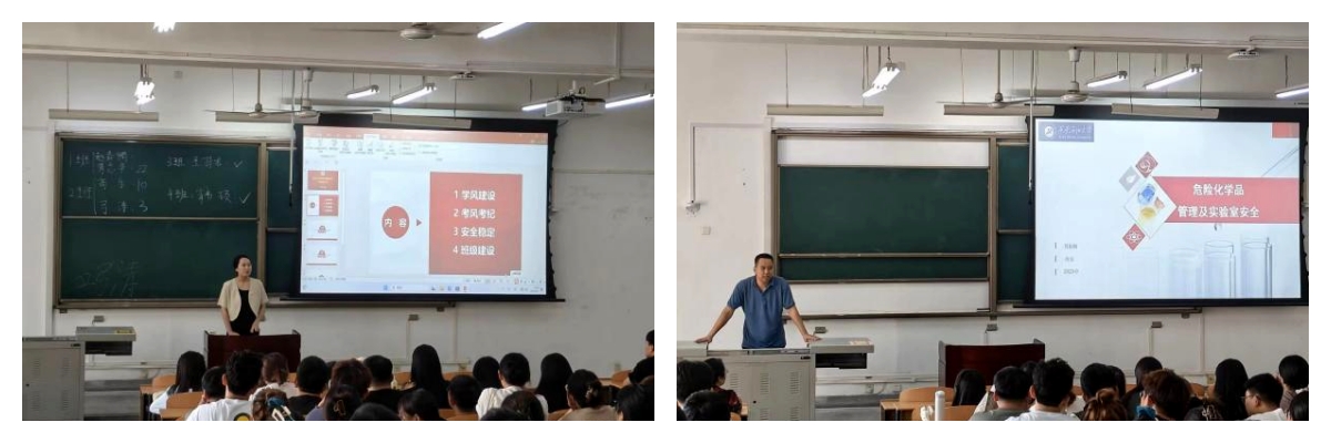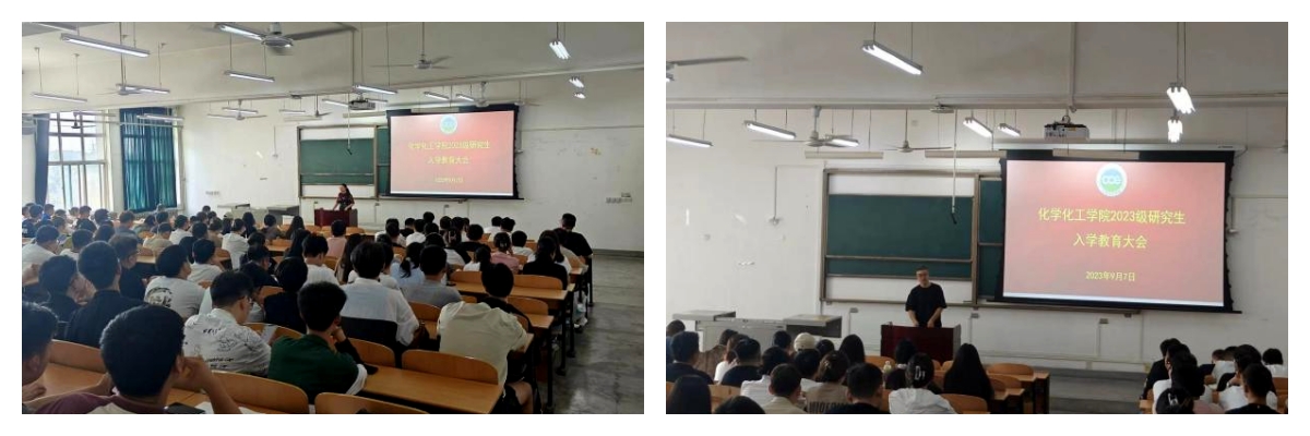 9月7日下午14:00,化学化工学院2023级研究生入学教育大会在鄠邑校区B321教室召开。化学化工学院科研办主任蒋胜老师、现代分析检测中心主任贾新刚副教授、综合办公室冯旭亮老师及全体2023级研究生参会。会议由2023级研究生辅导员王蓉主持。