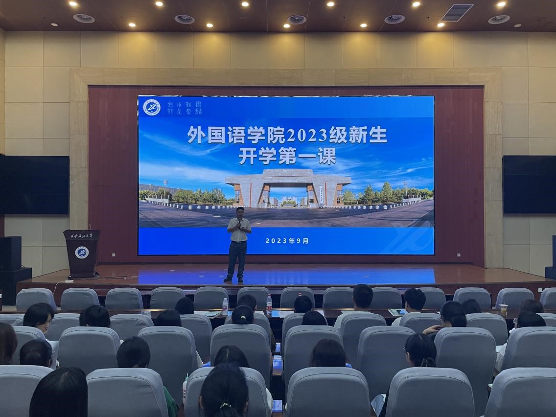 为扎实做好新生入校教育和管理工作,帮助2023级新生更好的适应大学生活,引导新生规划未来,明确目标,9月7日上午,外国语学院在鄠邑校区学术报告厅举行2023级新生开学第一课。学院党委副书记王业青,2023级辅导员以及全体新生参加会议。