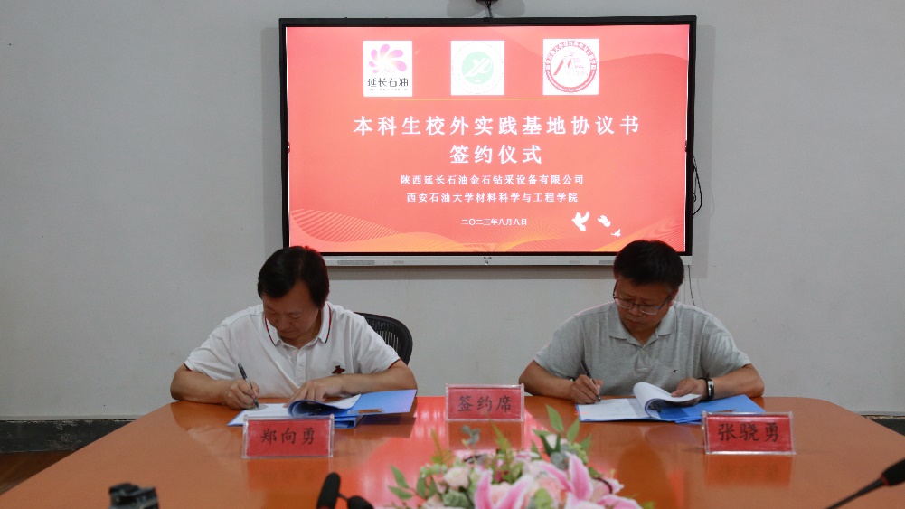 座谈会上,beat365官方网站材料科学与工程学院院长张骁勇与陕西延长石油金石钻采设备有限公司郑向勇总经理作为代表签署了本科生校外实践基地协议和战略合作协议。