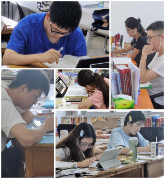 骄阳似火的盛夏,崇文楼403考研自习室凉爽宜人,同学们热情高涨,干劲十足。老师们走进考研自习室,勉励同学们一是要拿出勤学肯干的“钻劲”,考研复习是一个需要积累的过程,不可能一蹴而就,学如弓弩方可才如箭镞,当前正处于学习的黄金时期,应该把学习作为一种责任、一种精神、一种生活方式,让勤奋学习成为青春远航的动力,让增长本领成为青春搏击的能量。二是要拿出开锁解结的“巧劲”,考研复习是一场攻坚战,“磨刀不误砍柴工”,应该坚持科学规划、劳逸结合,合理规划好学习与休息时间,注重健康饮食,进行适当的体育锻炼,关注自我心理状况,适时地调整状态,养成乐观、理性、平和的心态。三是要拿出久久为功的韧劲,考研复习是一场持久战,需要长期付出辛劳,不能心浮气躁、浅尝辄止,而应循序渐进、水滴石穿,更要慎终如始,“行百里者半九十”,只有以坚强的意志做后盾,百折不挠、越战越勇,才能在最后阶段拥有战胜困难的信心和艰苦奋斗的实力,从而取得最终胜利。