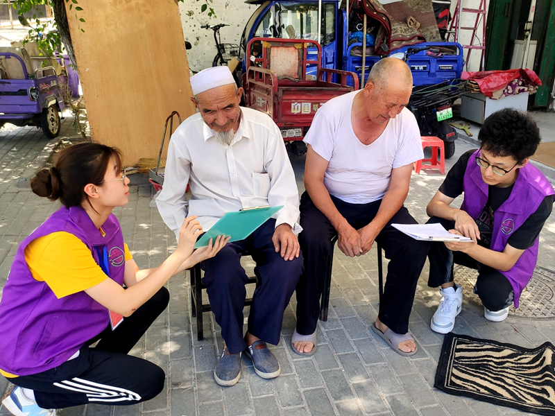 这样的感悟同样来自参加了社区服务工作后的其他队员。7月5日,团队进行了为期一天的社区服务活动,在红庙子片区福地社区的整理文件、接听电话、门岗值班等工作,让队员们对新疆发展的认知又有新的理解。