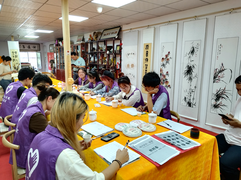 “一壶清茶伴一方字”,7月6日实践团前往新市区木材厂厚沙茶艺店,体验学习中华传统文化中的茶和书法。