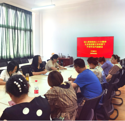 为进一步学习贯彻党的二十大精神,推进外语本科专业内涵建设,6月26日下午,外国语学院在华油能源楼727召开外语专业建设研讨会。副院长刘辉作了题为“深入贯彻党的二十大精神,扎实推进新文科背景下外语专业内涵建设”的专题党课,并围绕外语专业建设进行了深入的交流研讨。英语系、翻译系、俄语系三个专业支部全体党员及系部主任、副主任、专业带头人、专业负责人参加了研讨会。