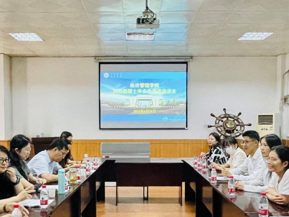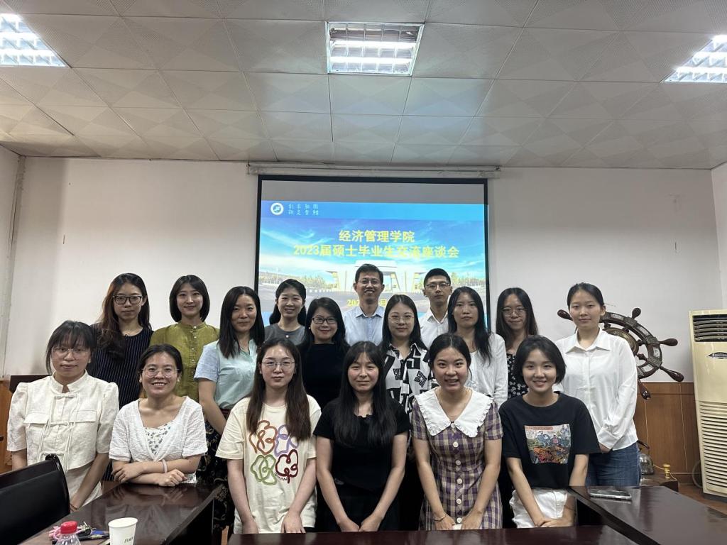 为掌握毕业生离校动态,进一步提高管理服务育人质量,落实立德树人根本任务,践行“围绕学生、关爱学生、服务学生”的工作理念,做好2023届硕士毕业生教育、管理、服务工作,经济管理学院于6月20日上午在东方石油楼1507会议室召开2023届硕士毕业生座谈会。经济管理学院副院长李春霄,学院硕士生导师黄莉、郑蕊,学院科研办主任武欢、学院科研办老师陆昕阳、2023届硕士毕业生辅导员陆晓寒及学院10余名硕士毕业生代表参加座谈会,会议由陆晓寒老师主持。